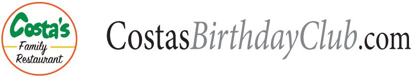 As a Birthday Club member you will receive an email on your birthday announcing a special surprise. Just present the email at Costa's Restaurant to enjoy your birthday surprise.